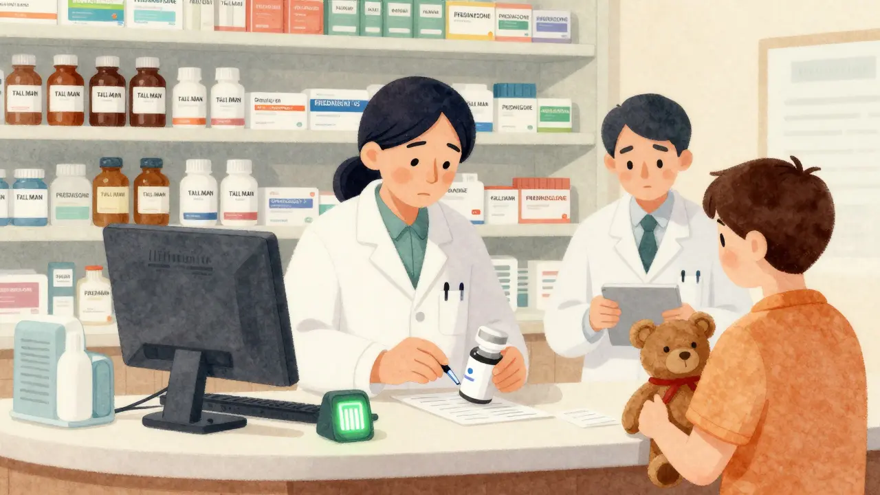 Barcode systems scan the prescription, the drug, and the patient’s ID-all before dispensing. A 2021-2023 survey of 127 hospitals showed this cut dispensing errors by 47.3%. Wrong drug? Scanned and flagged. Wrong dose? Caught before it leaves the counter. This isn’t futuristic tech-it’s standard in most hospitals now and becoming common in big retail chains.3. Implement Tall Man Lettering