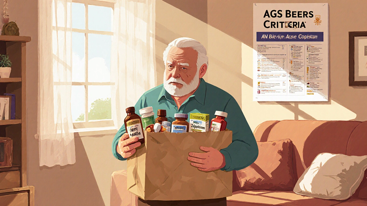 It’s not about how strong the drug is. It’s about how the aging body handles it. As we get older, our kidneys slow down. Our liver doesn’t process toxins as quickly. Our brains become more sensitive to sedatives. Even drugs that work fine for a 40-year-old can become dangerous for someone over 65. The gold standard for identifying these risks is the AGS Beers Criteria, a regularly updated list of medications that pose higher risks than benefits for older adults, developed by the American Geriatrics Society. The latest version, released in May 2023, flags 30 drug classes and 14 individual drugs that should be avoided in most seniors. These aren’t random picks. They’re backed by years of clinical data showing increased falls, confusion, kidney damage, and even death.Top 5 High-Risk Medications You Should Review Right Now