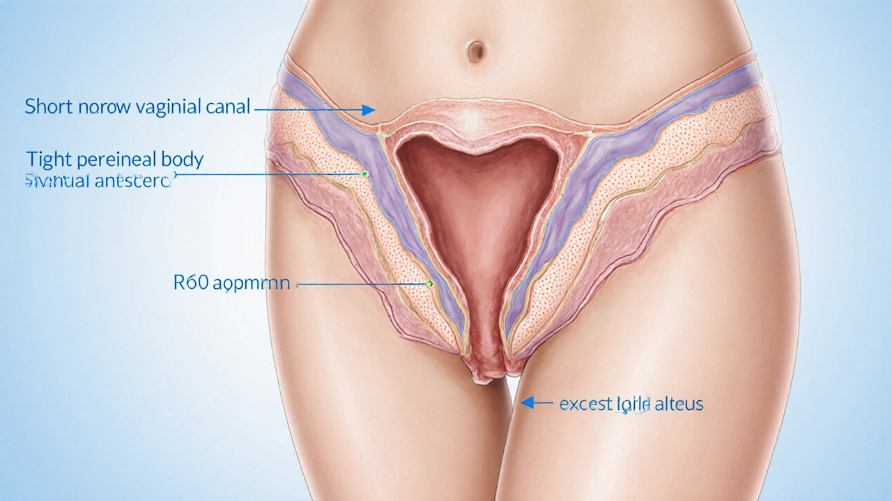 Think of the vagina as a tunnel that needs enough length and elasticity for comfortable penetration. Conditions that shorten the tunnel, such as post‑hysterotomy scarring or congenital vaginal agenesis, often lead to discomfort. Excessive labial tissue can cause friction, while a tight perineal body (the tissue between the vagina and anus) may trigger vaginismus. Identifying these issues usually involves a pelvic exam, sometimes complemented by imaging like pelvic MRI.